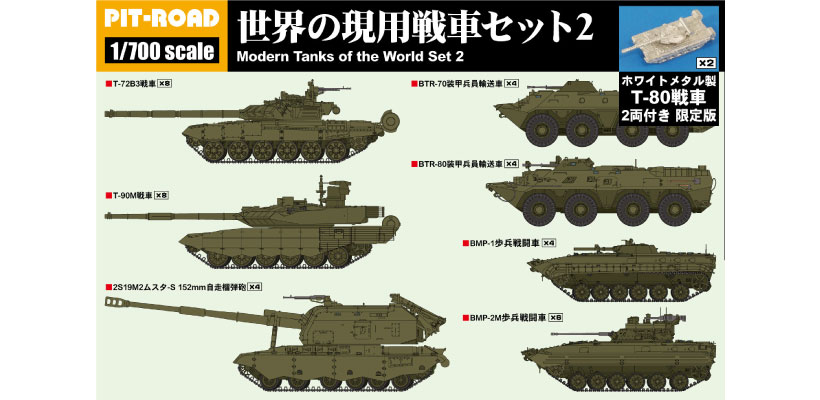 MI10SP 1/700 世界の現用戦車セット2(メタル製 T-80戦車 2両付き)